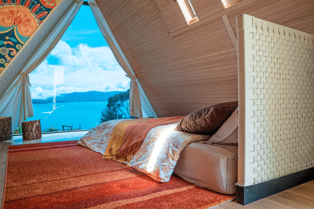 Revive la emoción del campamento con el confort de hoy. Este espacio te lleva de vuelta a la simplicidad, ofreciéndote todo lo necesario para un retiro inolvidable, incluyendo una cama doble y baño privado, todo con vista al lago de Tota. Estancia acogedora para 2 personas.
